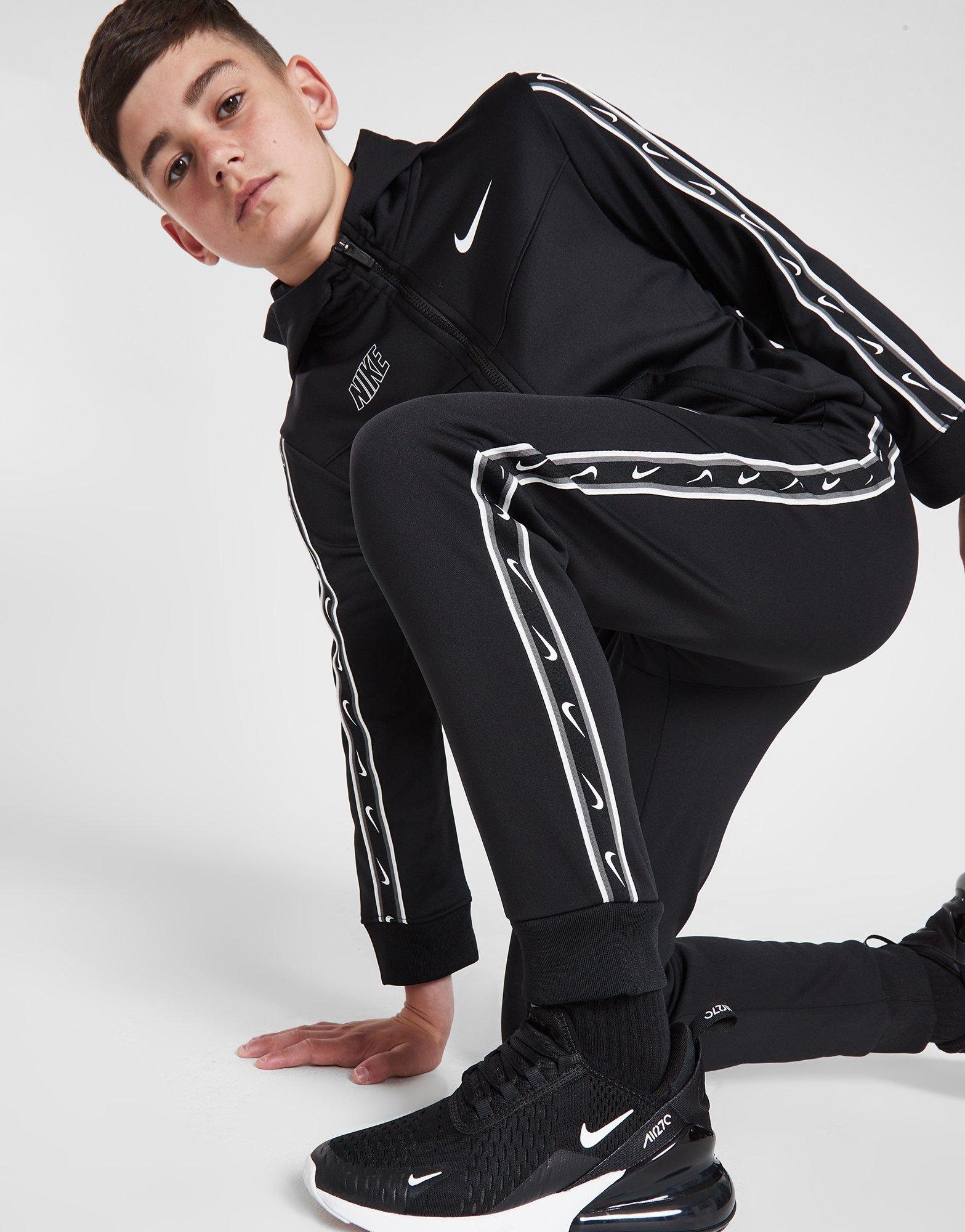 Reînnoiește outfitul urban și alege pantalonii jogger Repeat Tape Poly marca Nike pentru copii. Disponibil pe culorile negru și albastru, acest model slim-fit este confecționat din poliester moale care garantează confort la purtare. Talia elastică asigură o potrivire optimă pe corp. Tehnologia Dri-FIT absoarbe eficient excesul de transpirație. Buzunarele laterale sunt perfecte pentru lucrurile importante de dimensiuni mici. Acest articol vestimentar este decorat cu simbolul Swoosh pe partea frontală. Produs lavabil în mașina de spălat.
